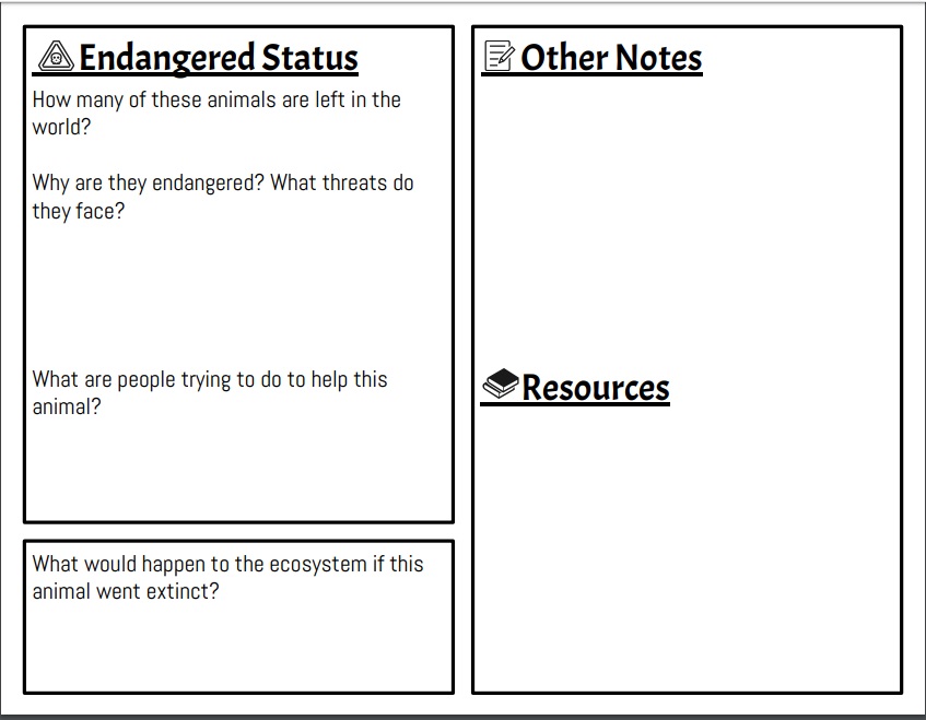 Work on the project Endangered Animals Research Report.