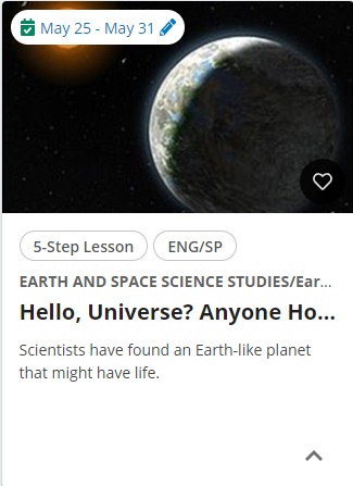 assigned by the teacher: Hello Universe? Anyone Home?