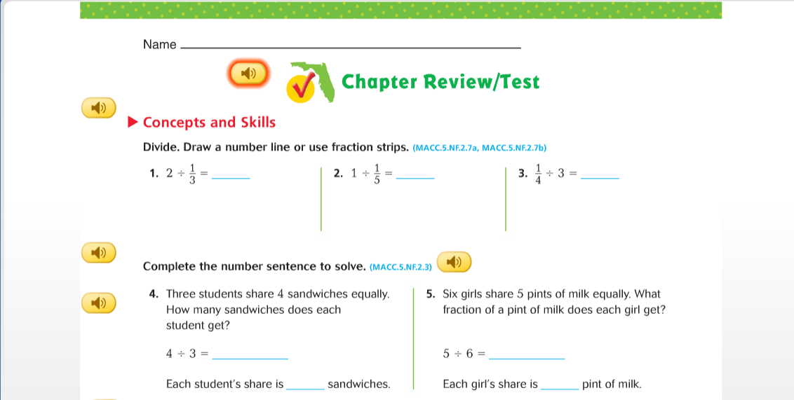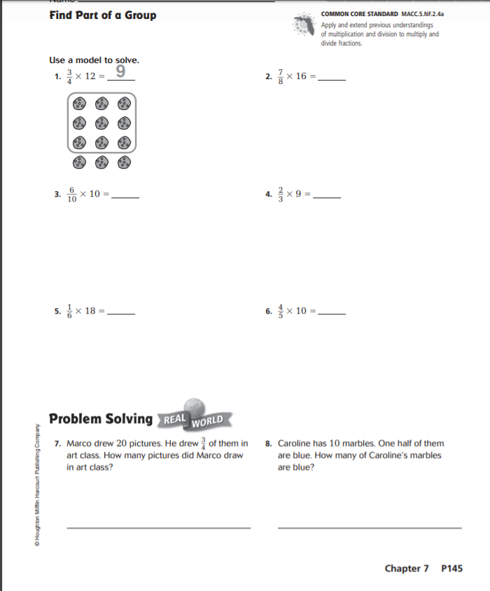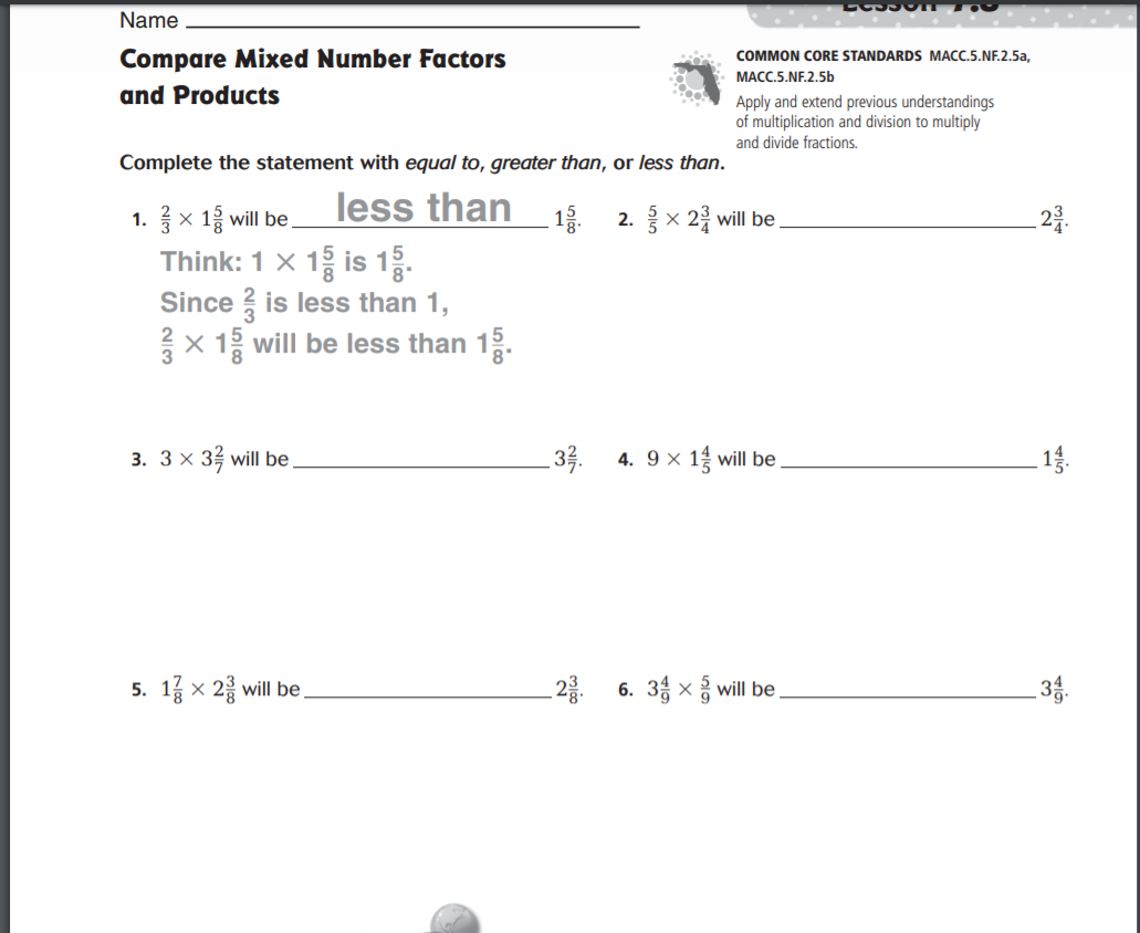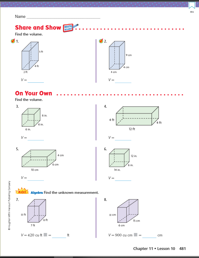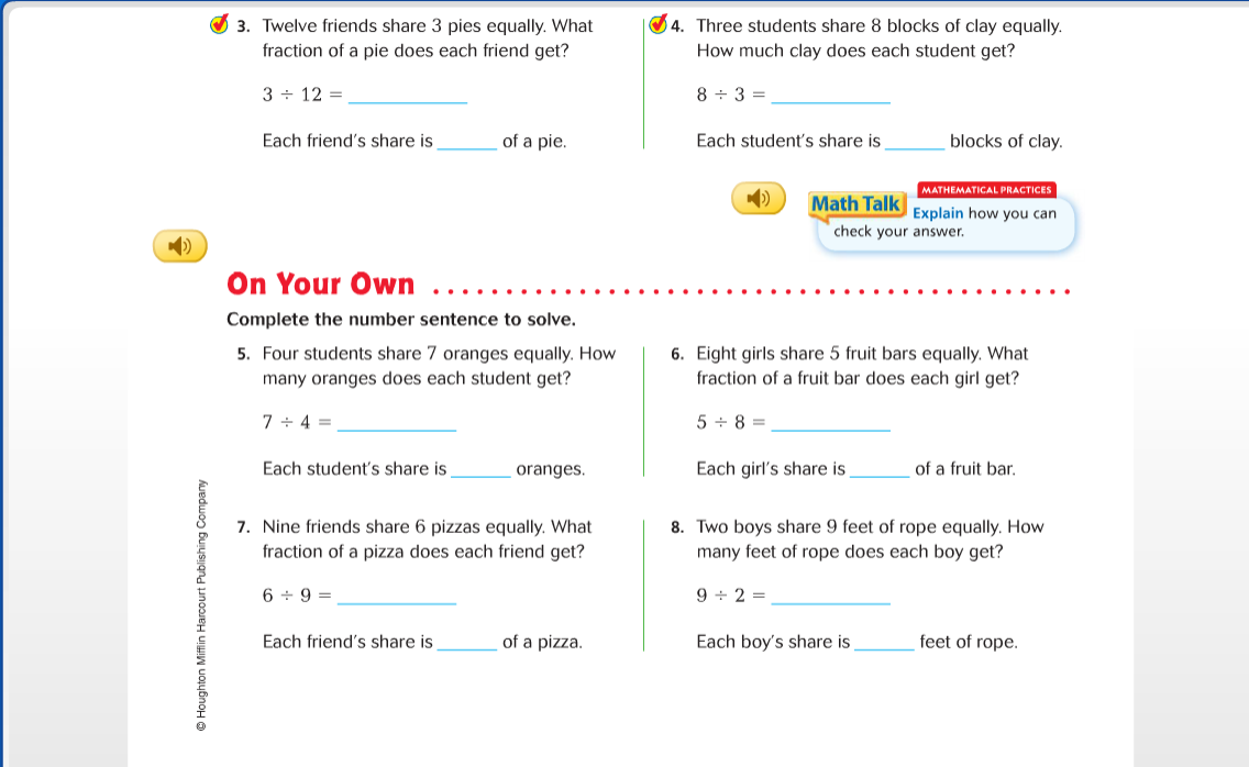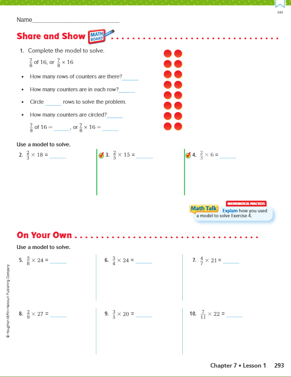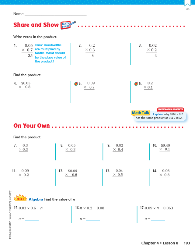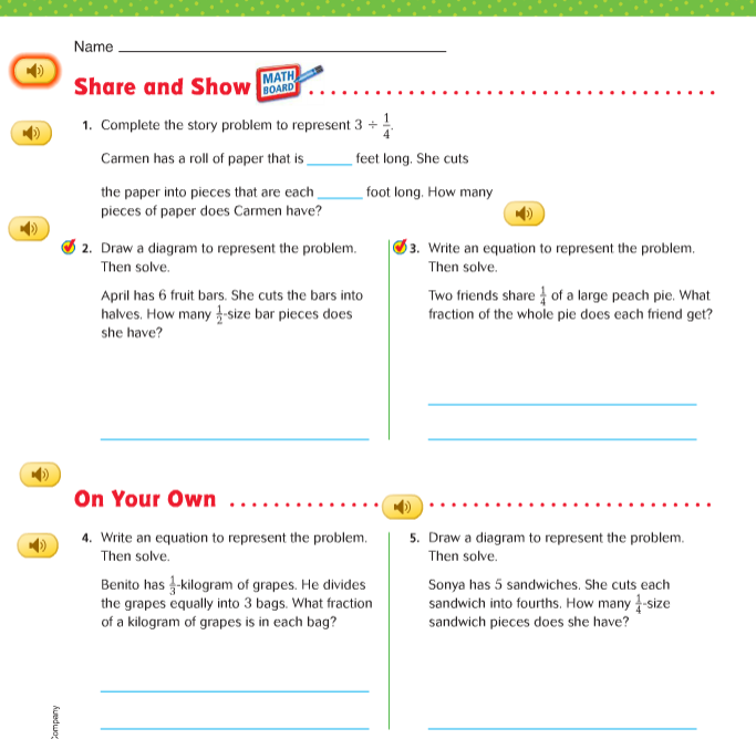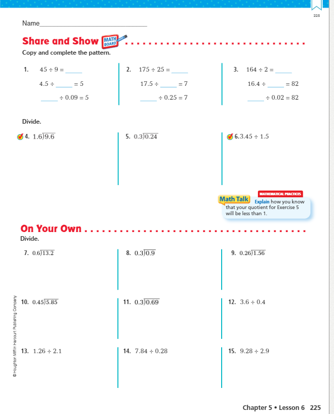 Complete problems 1, 2, 3, 4, 5 and 6 in the Share and Show section.
