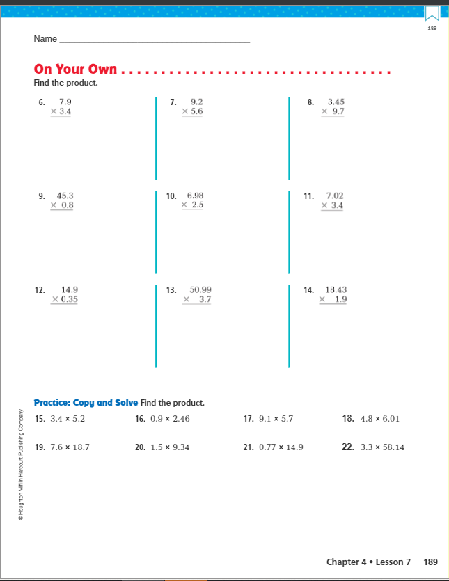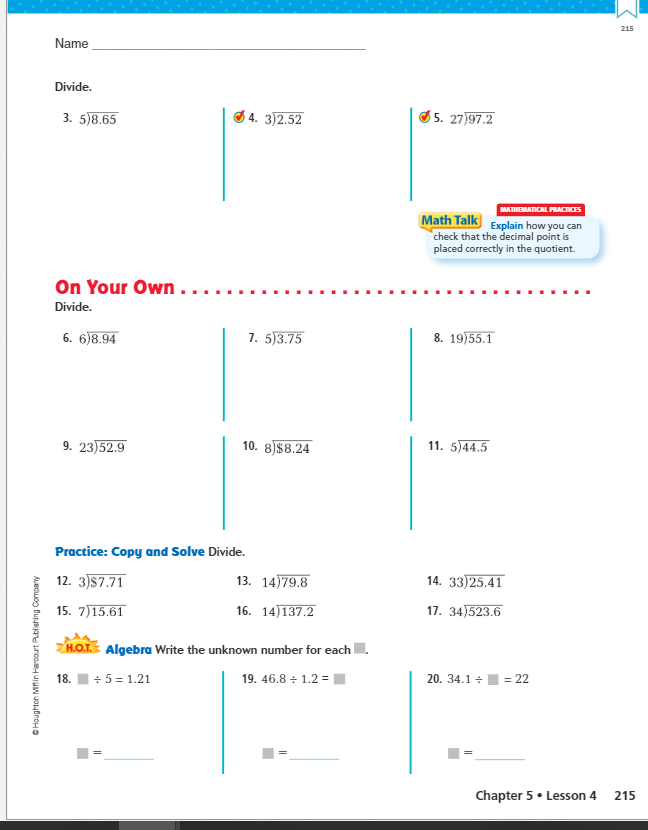 Lesson:  Divide Decimals
