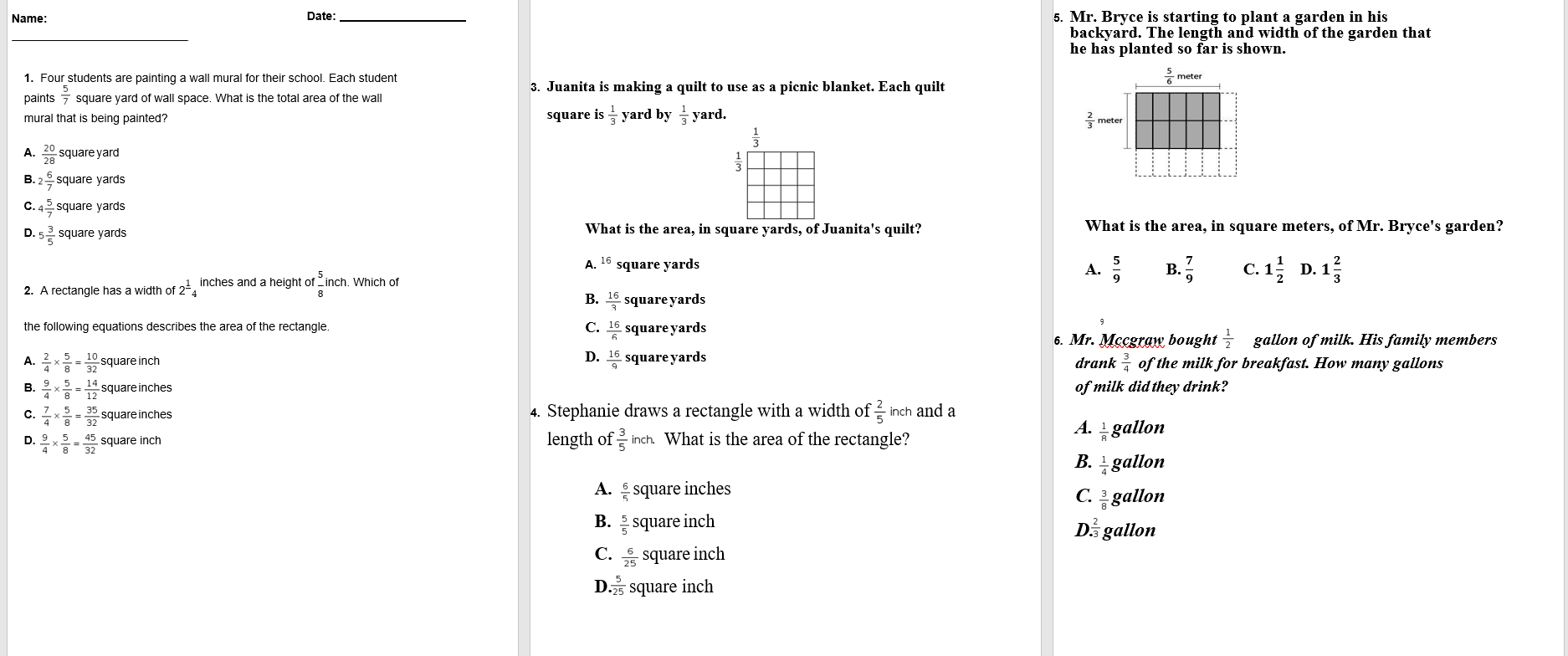 Objective: Student will be able to solve mathematical problems involving area, surface area and volume.