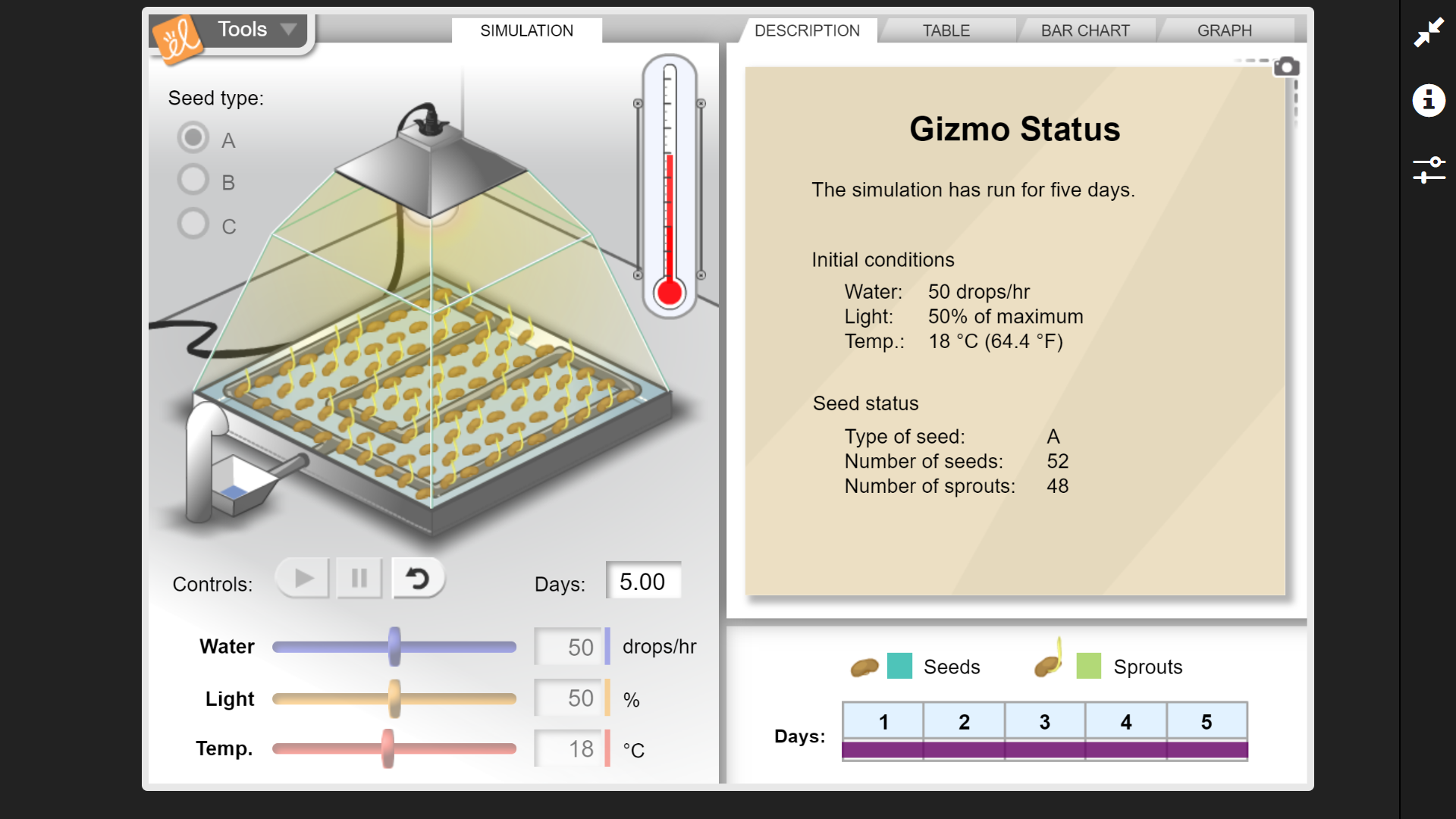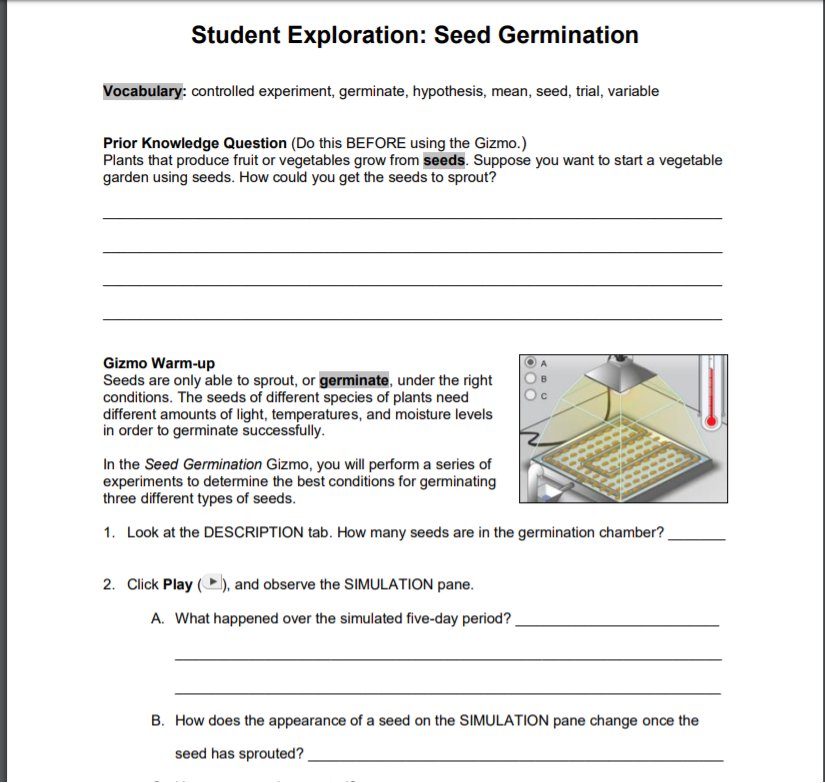 Teacher will begin the zoom meeting by reviewing the basic operations of the seed germination gizmo.