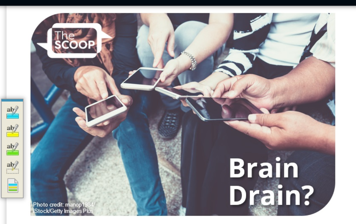 Students will log into achieve3000 and find the article “Brain Drain” in my lessons tab. Students will examine article in order to find and interpret key facts in order to answer comprehension questions related to the text. Students will complete other activities that are relevant to today’s lesson.