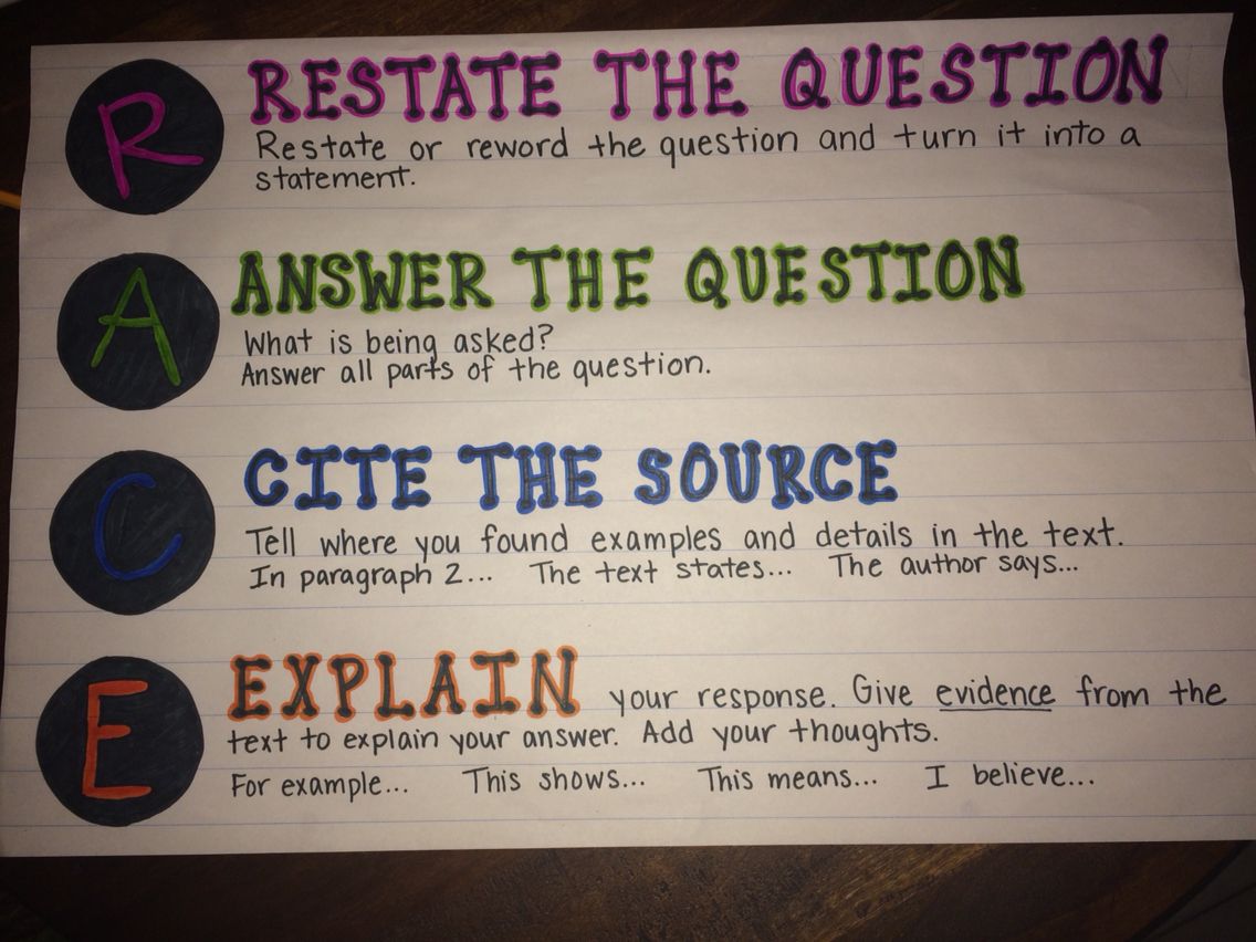 Use the RACE strategy to answer written responses.