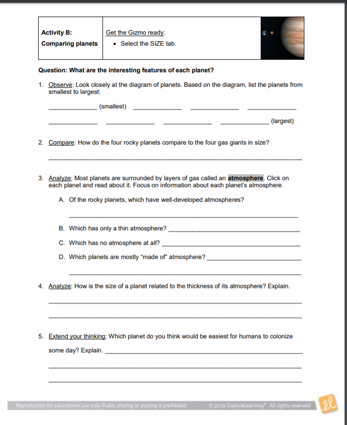 Finish Activity B page 2 worksheet of Gizmo.